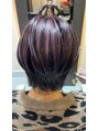 トップのみウィービングしてバイオレットをオンカラーしました カットはショートグラデーションでカットしてます