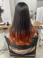 地毛を活かしてアクセントにオレンジを入れました◎顔まわりには3段のレイヤーをアクセントにワンカールで可愛いスタイルに◎