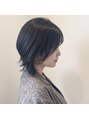 片より少し長めの長さに顔まわりからトップまでレイヤーを入れたヘアスタイルになります。色味はブルー系の色で透明感を出しました。