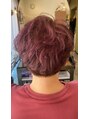 2ヶ月前にかけたパーマを活かしてカット、色はピンクですが光の当たり具合で明るめにもボルドー系の色にも見えます。