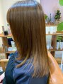 縮毛矯正ですが、オイルをコーティングしてうるツヤになれるオイルストレートです!乾かしただけでツヤッツヤになります!髪の状態に合わせて薬剤をセレクトし、弱い薬でじっくり時間を置いてかけるので、痛みにくく、柔らかな質感になります。
