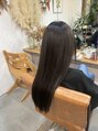 色味よりも痛みを気にされてる方なので弱めのものを使ってで染めませていただきました!少し落ち着いた色味ですが、光に当たった時の透明感がとてもきれいです!