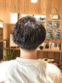 横はツーブロックで、後ろは刈り上げて短くさせて頂き清潔感UPを狙いつつ、上をソフトスパイラルパーマをあてる事にオシャレさ、カッコよさを一気に引き出すスタイルです!