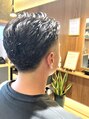 1~1.5カールのみのパーマスタイルです。横はツーブロとローフェードを組み合わせて清潔感UP!上はそこまで強い回転を出さずに毛流れを作るように意識し施術させて頂きました。