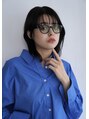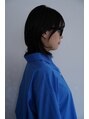 鎖骨の長さの大人ミディアム。前髪は眉毛ジャストの長さでぱっつん。赤色味を抑えつつ、柔らかなナチュラルブラウン。
