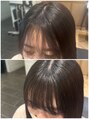 生え際のクセによって薄く見えてしまう前髪をクロスパーマで厚みが増すように作り、思い通りの前髪に◎[前髪/前髪カット/前髪縮毛/クロスパーマ/縮毛矯正/癖毛対応/クセ毛カット/ストレート/ストレートパーマ/コスメストレート/サイドバング/シースルー]