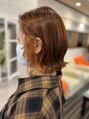 オレンジベースにオレンジのイヤリングカラー。この明るさならイヤリングカラーは1ブリーチでも出来ます。大人女性にもオススメなイヤリングカラー♪