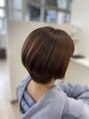 フロント多めに作って、サイドは耳にかけれるぐらいにカット毛量調節をしっかりする事でまとまりができ襟足スッキリ