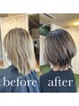 ハイトーンカラー元から入っているブリーチに色を被せています。