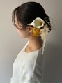 タイト目なシニヨンに大きめな飾りでお洒落に