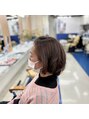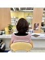 いつも赤みが出やすい髪質ですが、今回はマット系ブラウンで少しベージュよりにトーンアップ。自分のくせ毛を活かして、ひさびさの肩上ボブに。