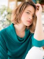 【スタイルは★ブックマーク★が便利】小顔効果ある前下がりボブに、くせ毛風のニュアンスカールをオン。空気感ある動きでアンニュイ顔に。大人ハイライトでスパイスを加えて色っぽさをプラス。耳かけも大人かわいい。(メイク担当:北浦和店 近藤)