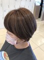 白髪はしっかり染めたい、なるべく暗くしたくない、という事でハイライトを入れてグレイカラーを!トーンは明るいままで白髪もしっかり染まります^o^