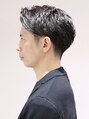サイドをツーブロックにして、かぶせるように少し長さを残した大人ショートスタイルです。前髪を上げる事で印象良く決まります。【気に入って頂いたスタイルは、ブックマークをしてご提示ください】