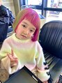 派手髪 キッズカラー ライムグリーンピンク キッズブリーチ/ホットペッパービューティー