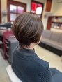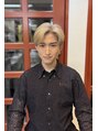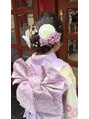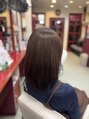 艶のあるベージュカラーで、ストレートヘアをアイロンで動きを付けて スタイリングしています
