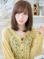 【スタイルは★ブックマーク★が便利】輪郭をカバーして小顔に見せる前下がりのワンカール&目力強調の斜めバングで美人度UP!透明感あるツヤカラーで好感度バッチリ。厚めバングやくせ毛風カールのふわミディもガーリー。(メイク担当COVERHAIRGROUP棟方)