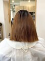 1回ブリーチ済みのベースから根元にハイライト+毛先ブリーチをしました。.コントラストを出すために下の部分は濃いグレーです