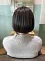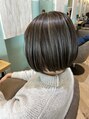 筋感をしっかり出したハイライトで全体のカラーとの陰影を出しました長さもボリュームを抑えたタイトボブにしました