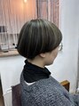 マッシュヘアにハイライトオリーブカラーで他と被らないスタイルへ!太めのハイライトを入れ、他は暗く明度の差をつけることではっきりとしたラインを入れることができます。乗せる色はオリーブ系で日本人特有の赤褐色を取り除き柔らかい印象を与えます!