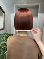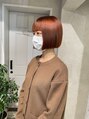 ぱつっと重ための切りっぱなしボブはカラーで遊び心を。ブリーチなしでも積み重ねていくことで、発色と色持ちのいいオレンジに。