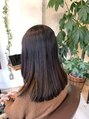 お手入れ簡単、ハネにくい肩下ミディアムとヘナカラーのツヤツヤスタイル。