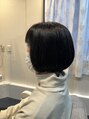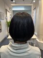 丸みのある少し重めのショートボブスタイルです。毛先はグラデーションで段を入れてあるので、乾かすだけでも自然な丸いシルエットに。