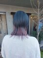 ブリーチベースの所にオンカラーしています。ブリーチは2~3回しています。表面はグレーでインナーは薄いピンクムラサキにしています。ベースもウルフになっていますのでメリハリがついてオススメです!色落ちも楽しんで頂けるカラーになっています。