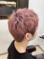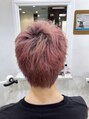 【ピンク×バングアップショート】フロントはおろしてもあげていてもどちらでも可能◎長めのツーブロックに合わせて全体的に短くスッキリ!!ピンクのカラーリングもカラシャンプーを使えば色も長持ち!!