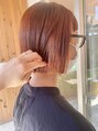 短めのミニボブにオレンジブラウンカラー◎前に入れてたイヤリングカラーのブリーチ部分はよりはっきりなオレンジで可愛いです!