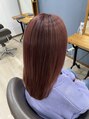 フルハイライトで束感や動きが出て、より理想の髪色へ!!全体にしっかりハイライトを入れることで縛った時、髪の毛をかきあげた時、巻いた時などに出てくるハイライトがいい感じに♪ピンクブラウンで可愛さUP!!