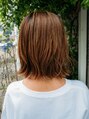 肩にちょうどつかないくらいのミディアムレングスのスタイルです!少しくびれのあるシルエットなので重たくなりすぎず全体にスッキリとした印象になります!バングはシースルーなのでさらにナチュラル感が増しヘルシーに!