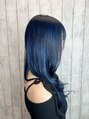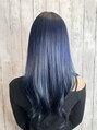 パッと目を引く【ネイビーカラー】♪ 【韓国風】【レイヤーカット】との組み合わせでオシャレな雰囲気に(*≧∀≦*) ( ※ベースカラーがブリーチをされている明るめヘアに限ります)毛先をゆるく巻いたスタイリングで上品な仕上がりも◎/ロング/レイヤー/