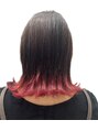 - 全体は暗めにトーンダウンさせ、スソの部分をブリーチしてオンカラーします