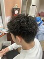 メンズ。ツーブロックとツイストパーマでトレンド感のあるスタイルに。