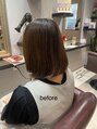 初・縮毛矯正のお客様です。2枚目のbeforeのお写真を見て頂きますと、左に流れる癖があります。おさまりやすい感じにナチュラルに伸ばしております。