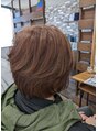 ショートボブスタイル☆トップのレイヤーにニュアンスパーマをかけてボリュームが気になる方におすすめのメニューです☆根本が伸びてくる頃に定期的なパーマをおすすめします!カラーは白髪染めの一番明るいお色で白髪を染めつつも明るさを実現しています!