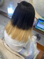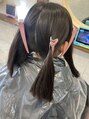キッズの毛先染めです♪某アニメのキャラクターになりたいそうで、色落ちを考えて濃いめのピンクパープルに!追いブリーチしてオンカラーで毛先は事前に20センチほどカットしてあります。