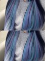 バレイヤージュ/ブルー/個性派/デザインカラー/暗髪/艶髪/ロング