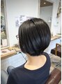 横から見た時に綺麗なシルエットになるようにカットしました。襟足はタイトにおさめて首元すっきりスタイルです!