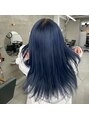 ネイビー×ロングウルフ 天神/今泉 ケアブリーチ/ハイトーン/ホットペッパービューティー
