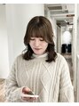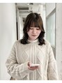 顔周りから耳後ろにかけてレイヤーをin。コテで緩く巻いてふんわりなるように。カラーはほんのりオリーブがいるオリーブベージュ。