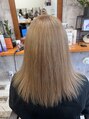 ブリーチを数回繰り返し毛髪全体が色むらがありました。全体の色を統一するためにブリーチを施しmkt9で全体を染める。