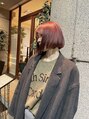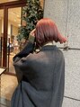 2回ブリーチしてある髪に、ピンク×ラベンダー×ブラウンを混ぜ合わせた、チェリーピンクカラーに仕上げました!カットも、切りっぱなしボブスタイルにして、オシャレかつ大人っぽくも見えるヘアスタイルに仕上げました!