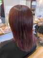深めのカシスピンクカラーで春を先取り♪キュアトリートメントも同時施術しているのでツヤ感も◎