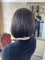 ボブスタイルに暗めのアッシュカラーをさせていただきました^^明るさのトーンを下げながら、くすんだ色を入れる事で落ち着いたツヤのある色に。大人可愛いスタイルにも合う色味になります。