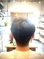 サイドのツーブロックと自然に繋がるバック、丸みがありながらスッキリとした、メンズスタイル。クセ毛の方は、スタイリングしやすい!直毛の方は、ポイントパーマもチョイスしていただくと、なお良いですね!