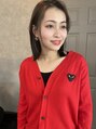 切りっぱなし外はねストレートに後れ毛をだしアクセントにしました♪