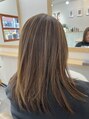 ベースカラーは明るめ。さらにハイライトを入れているハイトーンスタイルです。仕上げにネオメテオアルカリ酸熱トリートメントをしているので、極上のうるツヤヘアーに仕上がっています。