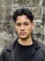 メンズのセンターパートスタイルにアイロンで髪の毛に動きを出した、無造作なセンターパートスタイルです。